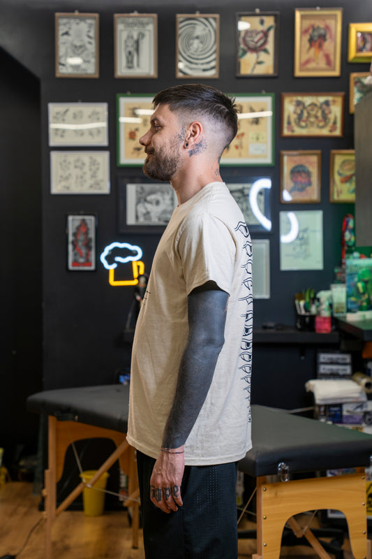 Questa t-shirt nasce dalla collaborazione tra Zerobased e Artem Ink Shop & Barber, unendo stile e arte del tatuaggio in un design esclusivo. Il modello ha una vestibilità regular e un taglio unisex, pensato per adattarsi a ogni fisicità con comfort e semplicità.