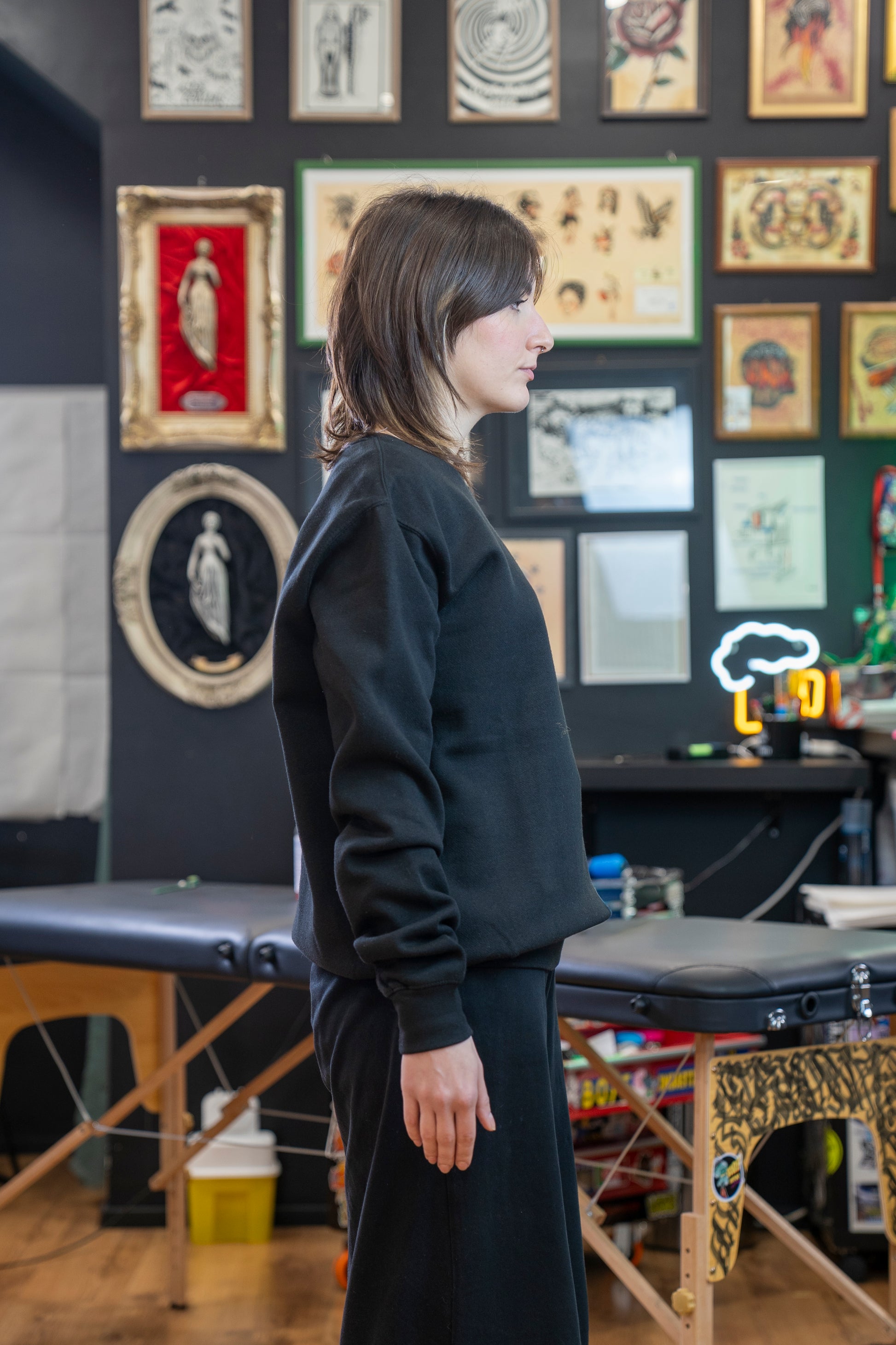 Felpa in 70% Poliestere e 30% Cotone, girocollo , Grafica ideata e creata da Valerio Borrelli. Stampa in digitale fronte e retro, vestibilità regolare.